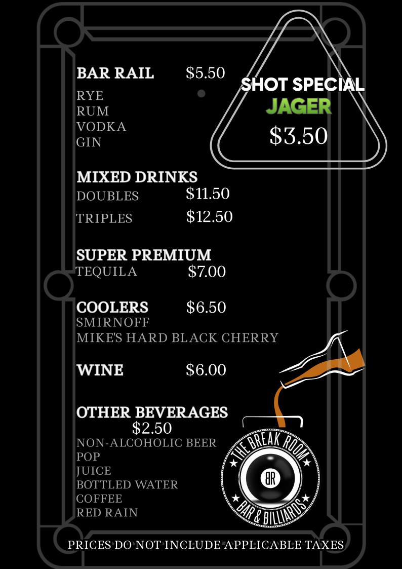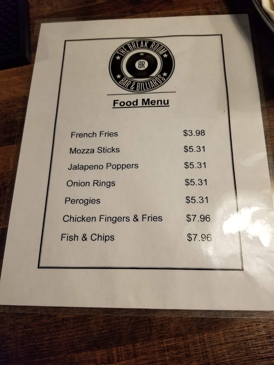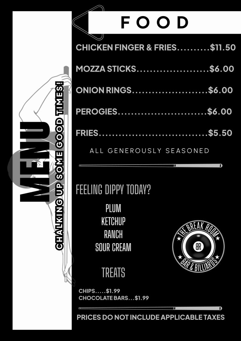 The Break Room - Waterloo Menu
